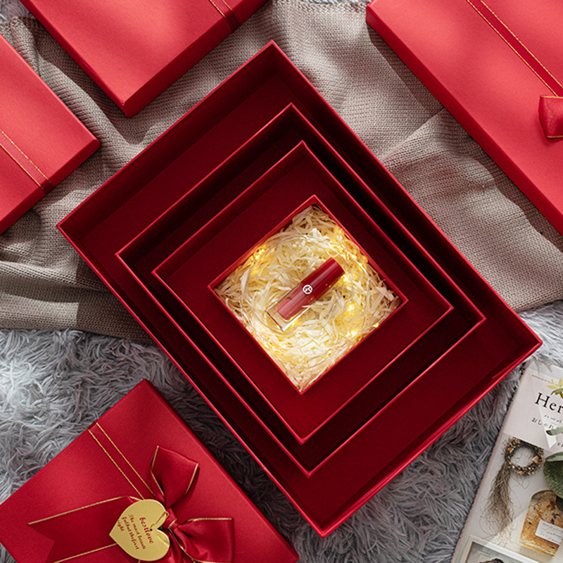 Most Popular Wedding Gift Box Square Light Blue Pink Customizable Ribbon Magnetic Lid Embossed Bridesmaid Stamping Paperboard