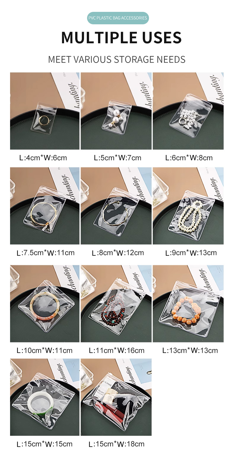 Cheap Clear PVC Zipper Bag with Logo Thick Transparent Zip for Earrings and Jewelry Pouch for Gemstones PVC Jewelry Bag for Sale
