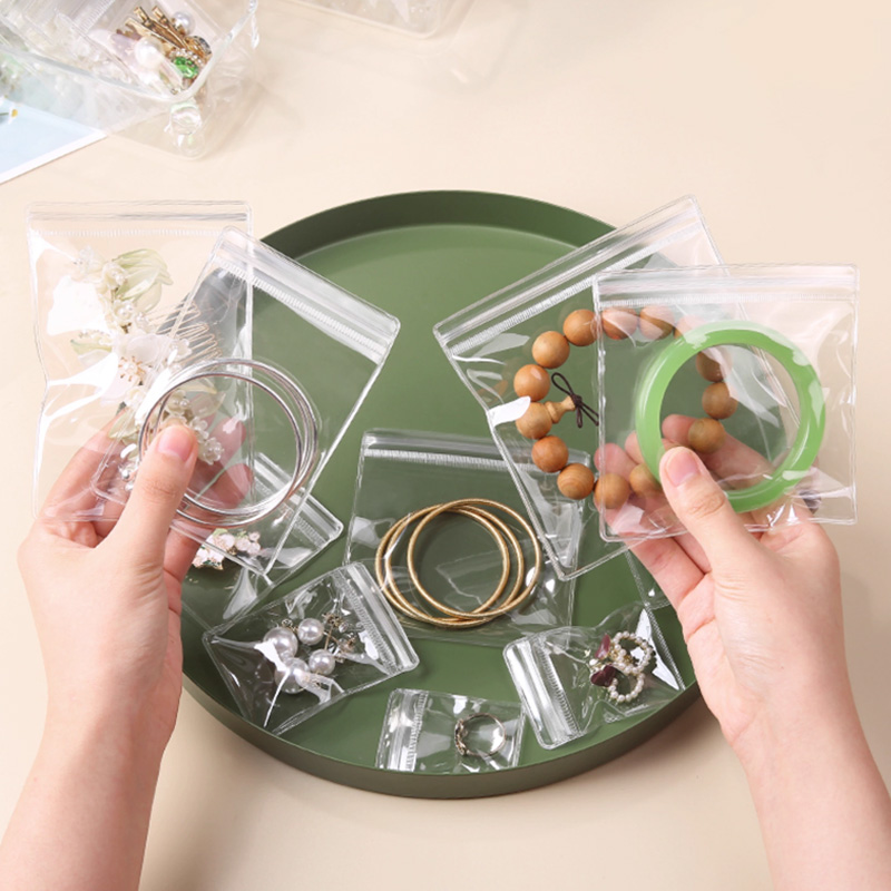 Cheap Clear PVC Zipper Bag with Logo Thick Transparent Zip for Earrings and Jewelry Pouch for Gemstones PVC Jewelry Bag for Sale